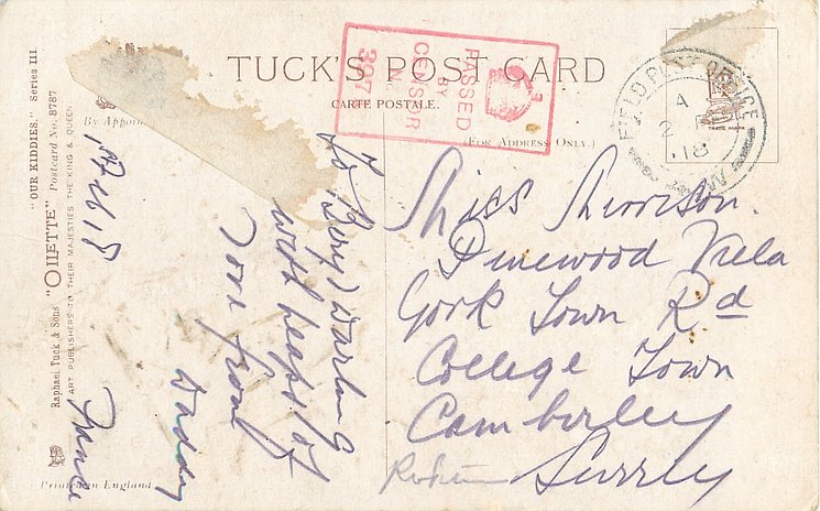 OILETTE, PRINTED IN ENGLAND or PRINTED IN THE UNITED KINGDOM, COPYRIGHT LONDON or not, listed in 1930 POSTCARD Catalogue