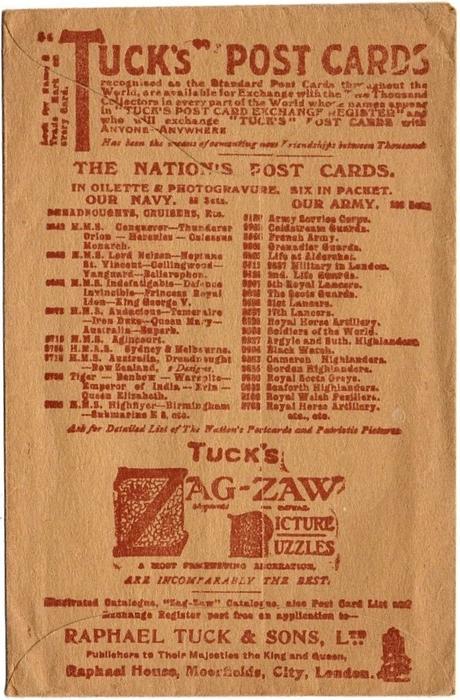 DESIGNED IN ENGLAND, CHROMOGRAPHED IN GERMANY, listed in RAPHAEL TUCK & SONS' LD. CHRISTMAS & NEW YEAR 1904/1905 catalogue