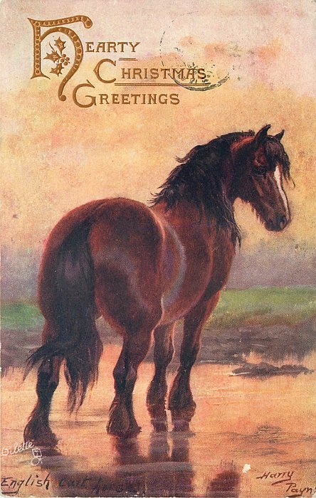 comes opt. in green A HAPPY CHRISTMAS, in blue WITH BEST CHRISTMAS WISHES in gilt HEARTY CHRISTMAS GREETINGS