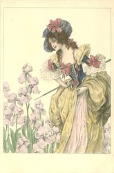 ladies in old style dress & irises
