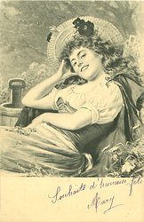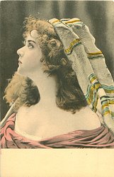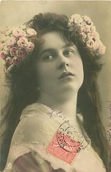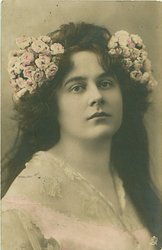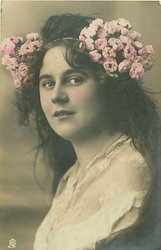 editions artistique, head & shoulder studies of pretty long-haired brunette with roses in her hair