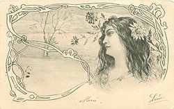 en pleine air (1904 list) in the open, nouveau designs, heads against rural backgrounds